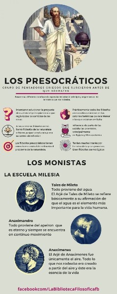 Algunos filósofos presocráticos, conocidos como monistas, creían que el universo se originaba a partir de un único elemento.